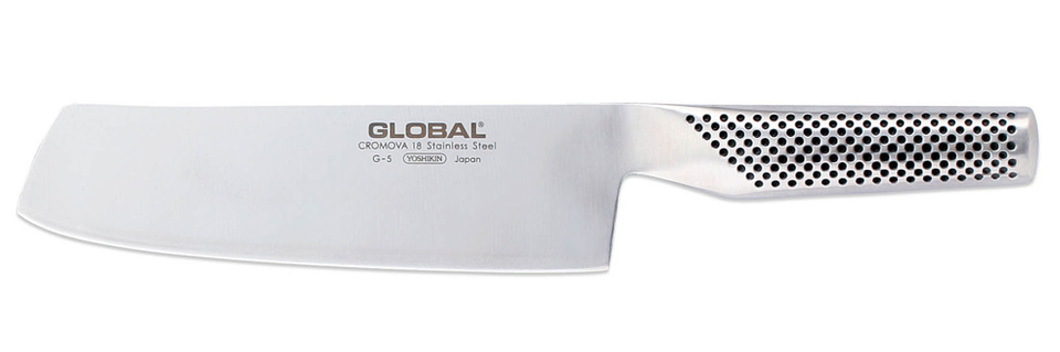 The G-5 18cm Vegetable Knife is inspired by traditional Japanese Usuba knives, popular amongst professional chefs in Japan as a specialist vegetable knife. The idea behind the shape of the blade is that it encourages a straight up down chopping motion where the full blade length meets the chopping board so it will go straight through the whole vegetable.