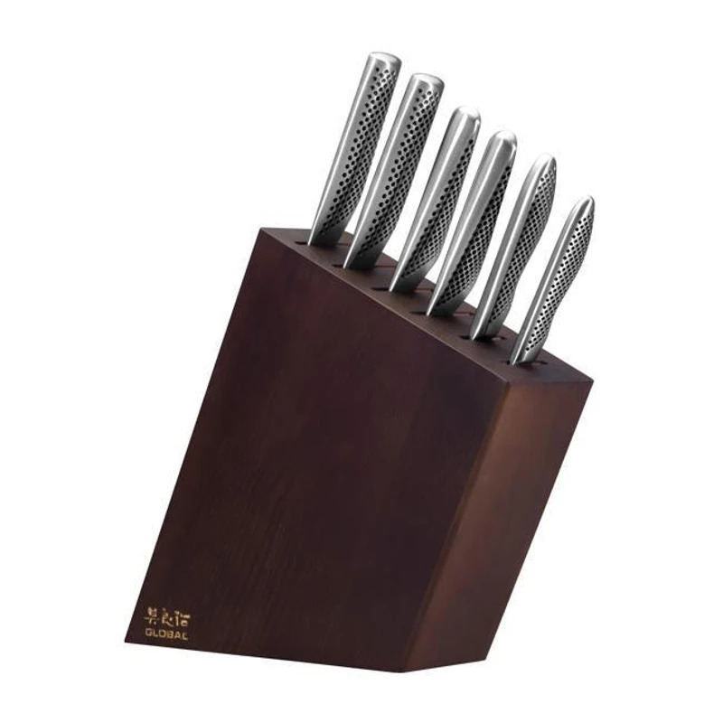 When purchasing any GLOBAL knife block set, we strongly recommend investing in a ceramic water sharpener or whetstone in order to maintain your knives and keep them razor sharp.