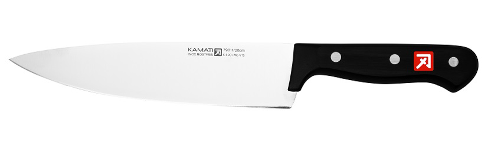 Guaranteed to please even the keenest cook, this Kamati Gourmet 20cm Cooks Knife will be a welcome addition to any kitchen. It is a lightweight and expertly crafted, razor-sharp knife forged from high quality German stainless steel that won’t dull, chip or crack easily.