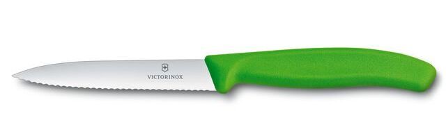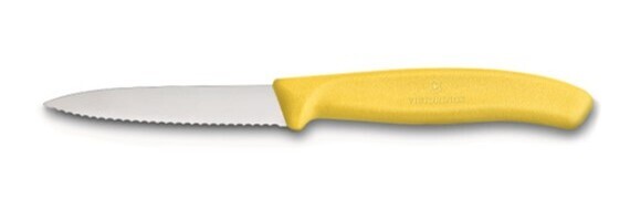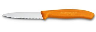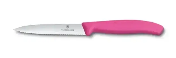 This pointed tip serrated Victorinox ergonomic handled paring knife is ideal for piercing and cutting. The sharp point is great for piercing and cutting fruit, de-veining prawns and also decorative carving. The serrated edge makes for chopping through small vegetables like tomatoes, celery and radishes easier.