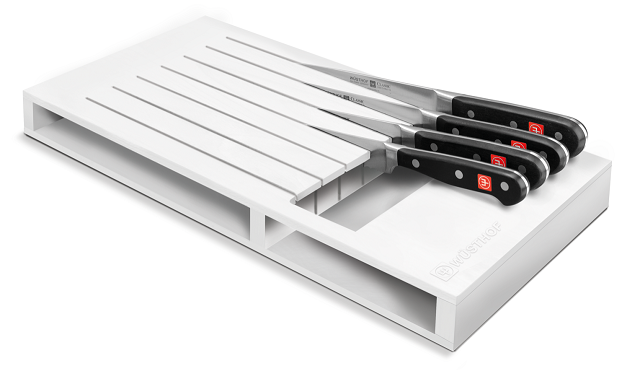 When you do not want to store your knives on display this in-drawer organiser keeps them tidy and safe. It has been stripped back to the bare essentials with a stylish design in easy-care plastic. The large handle opening at the front means it is easy to grab the knives out and remove them safely.
